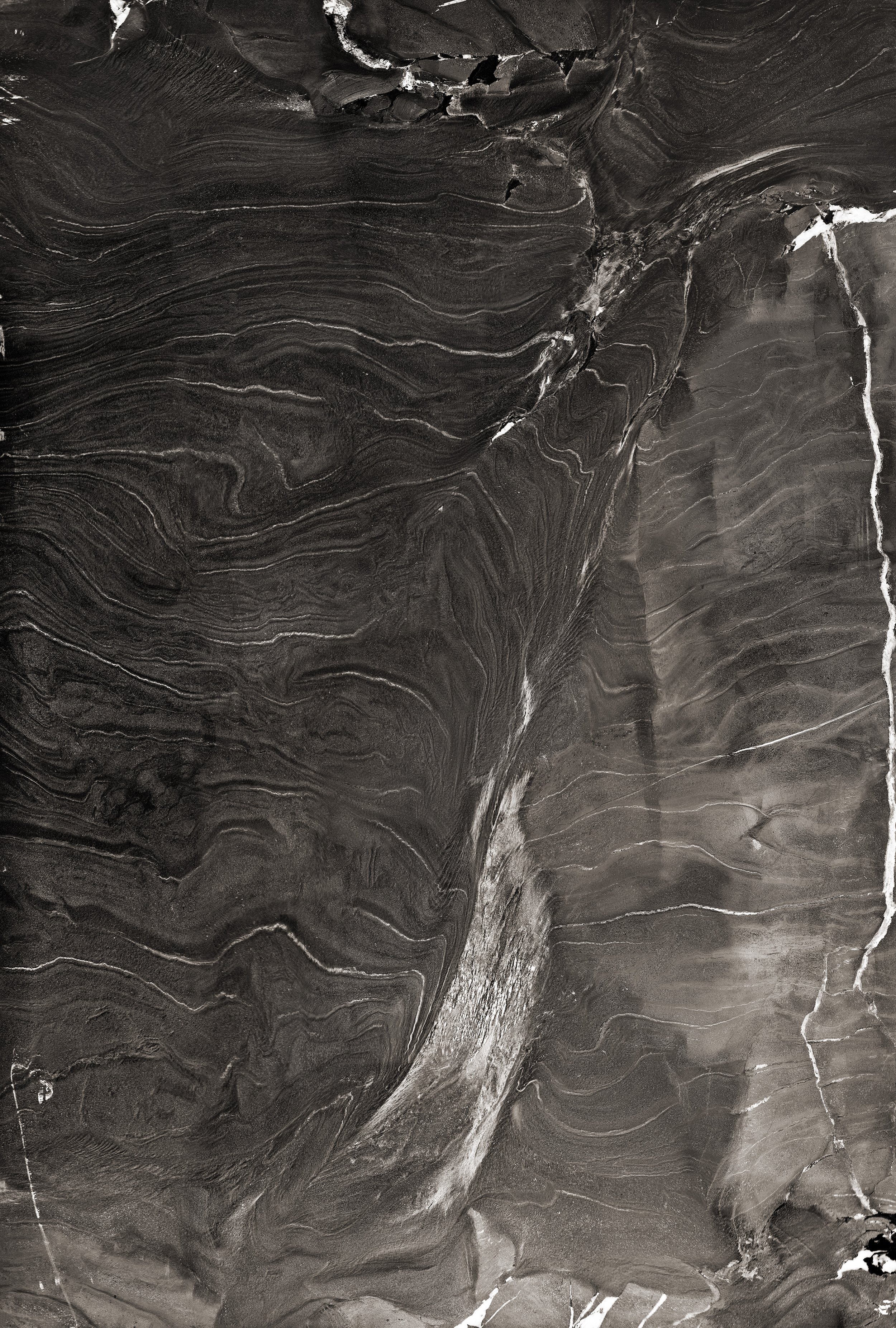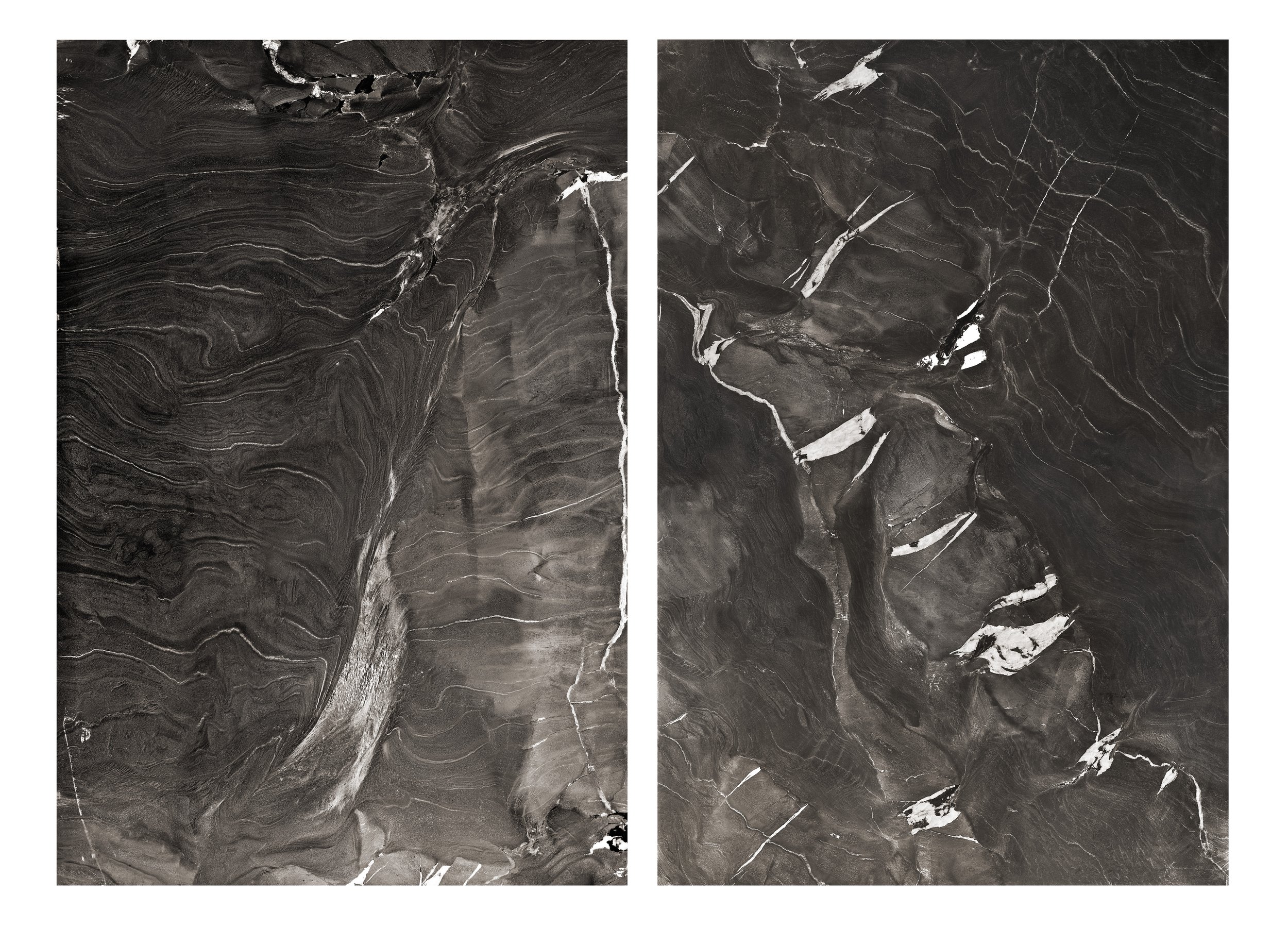 Inspired by Roger Caillois’s The Writing of the Stones, these large-scale photographs of semi-precious stone slabs are meditations on the complex orchestration of time, force, labor, energy, capital, and desire embedded within them. Each image is constructed from 50-60 high-resolution photographs, sutured together and presented at a 1:1 scale. These works are intended as an archive of and a requiem to these ancient formations—created over thousands to millions of years—that contain the history of the world.